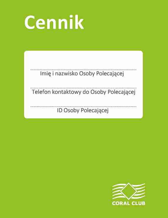 Praktyczny dodatek biznesowy dla Dystrybutorów. Cennik zawiera aktualne ceny produktów, akcesoriów i literatury Coral Club International.