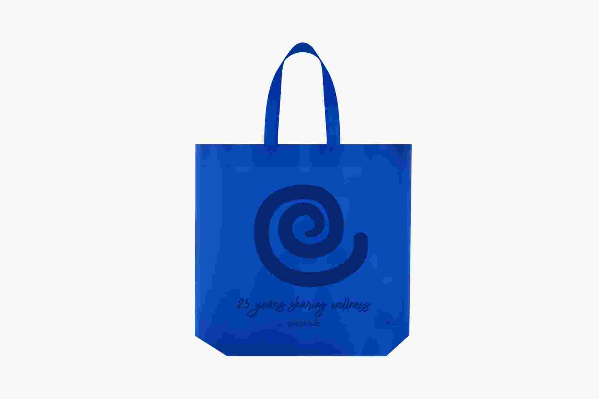 Wytrzymała torba wielokrotnego użytku z włókniny spunbond z długimi uchwytami.