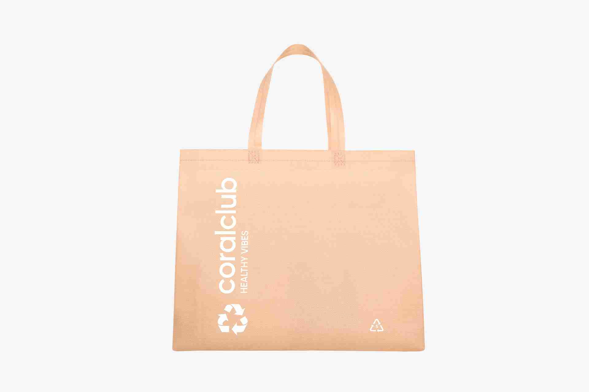 Wytrzymała torba wielokrotnego użytku z włókniny spundbond z długimi uchwytami.